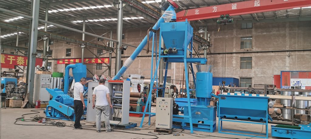 Finally, the cooled pellets are transported via another bucket elevator to the top of the mill, where gravity moves them to storage facilities or packaging lines.